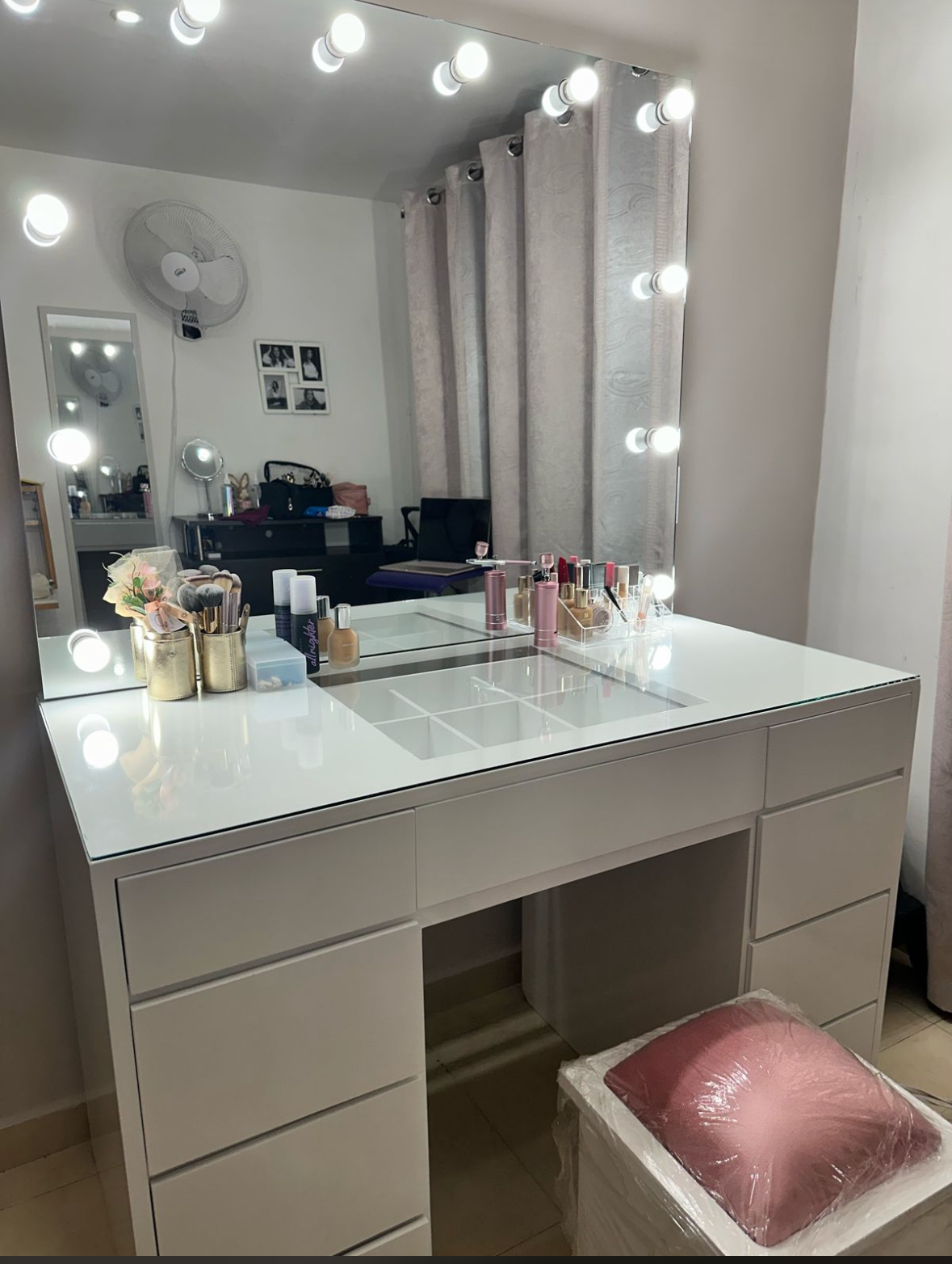 Tocador con iluminación y doble espejo